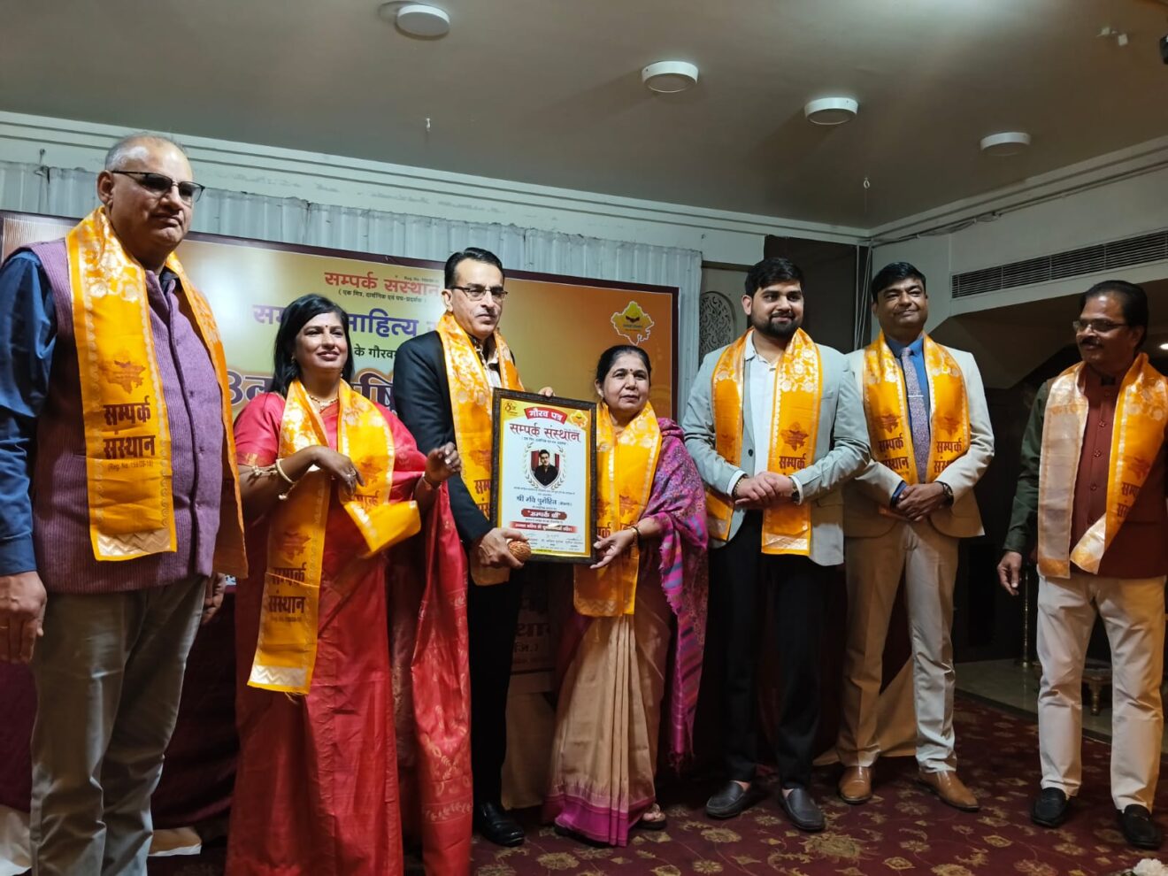 इस अवसर पर उन्होंने संस्थान की नवीन राष्ट्रीय कार्यकारिणी का स्वागत किया और शपथ दिलाई। वार्षिकोत्सव के अवसर पर साहित्य और संस्कृति के क्षेत्र में दिए गए अवदान के लिए बीकानेर के साहित्यकार रवि पुरोहित और नवनीत पांडे सहित देश के 21 प्रतिष्ठित साहित्यकारों को ’संपर्क श्री’ सम्मान से नवाजा गया। संपर्कश्री से समादृत रचनाकार रवि पुरोहित ने अपने उद्बोधन में कहा कि संास्कृतिक व सामाजिक सरोकारों को समर्पित इस तरह केअनुष्ठान पिछड़े, शोषित और जरूरतमंद लोगों के लिए रामबाण है और वे सामाजिक विकास की मुख्यधारा में शामिल होने के लिए ऊर्जस्वित होंगे। संपर्कश्री अर्पण के प्रति आभार ज्ञापित करते हुए पुरोहित ने कहा कि सम्मान और पुरस्कार जहां रचनाकार की सामाजिक पहचान बनाते हैं, वहीं एक नवीन जिम्मेदारी और दायित्वबोध भी उसे सौंपते हैं। समारोह में बसंती पवार, डॉ. बसंत सिंह सोलंकी, गोविंद भारद्वाज, हरि प्रकाश राठी, हरिराम मीणा, हेमंत शेष, हितेश व्यास, मधु खंडेलवाल, रिजवान एजाजी, मनोज कुमार शर्मा, मीठेश निर्मोही, डॉ नवल किशोर, सुधा जुगराज, प्रेम आनंदकर, डॉ. सतीश कुमार और शिव कुमार शर्मा को सम्मानित किए गए।