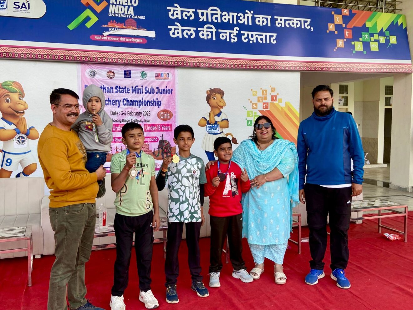बीकानेर।जयपुर में 3-4 फ़रवरी को आयोजित राजस्थान स्टेट मिनी सब जूनियर तीरंदाजी प्रतियोगिता में सार्दुल क्लब के तत्वाधान में 720 आर्चरी अकैडमी का शानदार प्रदर्शन रहा जिसमे U-10 रिकर्व में हिमाद्रिका पांडेय ने स्वर्ण व U-13 कंपाउंड में विहान खत्री ने कांस्य पदक पर निशाना साधा, इस हेतु इनके कोच मुकेश सुथार, राम स्वामी ने बधाई दी साथ ही सार्दुल क्लब के अध्यक्ष हनुमान सिंह राठौड़, सचिव एम.पी. सिंह सोईंन,खेल कार्यकारणी सदस्य विनय प्रताप सिंह बीका, राजेंद्र स्वामी व अजय सिंह भटनागर ने नेशनल में अच्छा प्रदर्शन करने हेतु उज्जवल भविष्य की कामना की