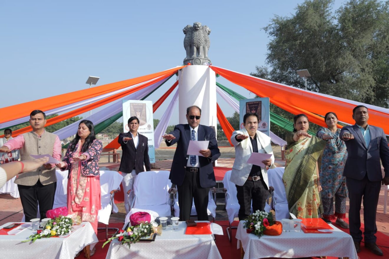 कार्यक्रम में अध्यक्षता कर रहे कुलगुरु आचार्य मनोज दीक्षित ने संविधान की उद्देशिका का वाचन किया एवं पंचायती न्याय व्यवस्था की महत्ता पर बात कही।