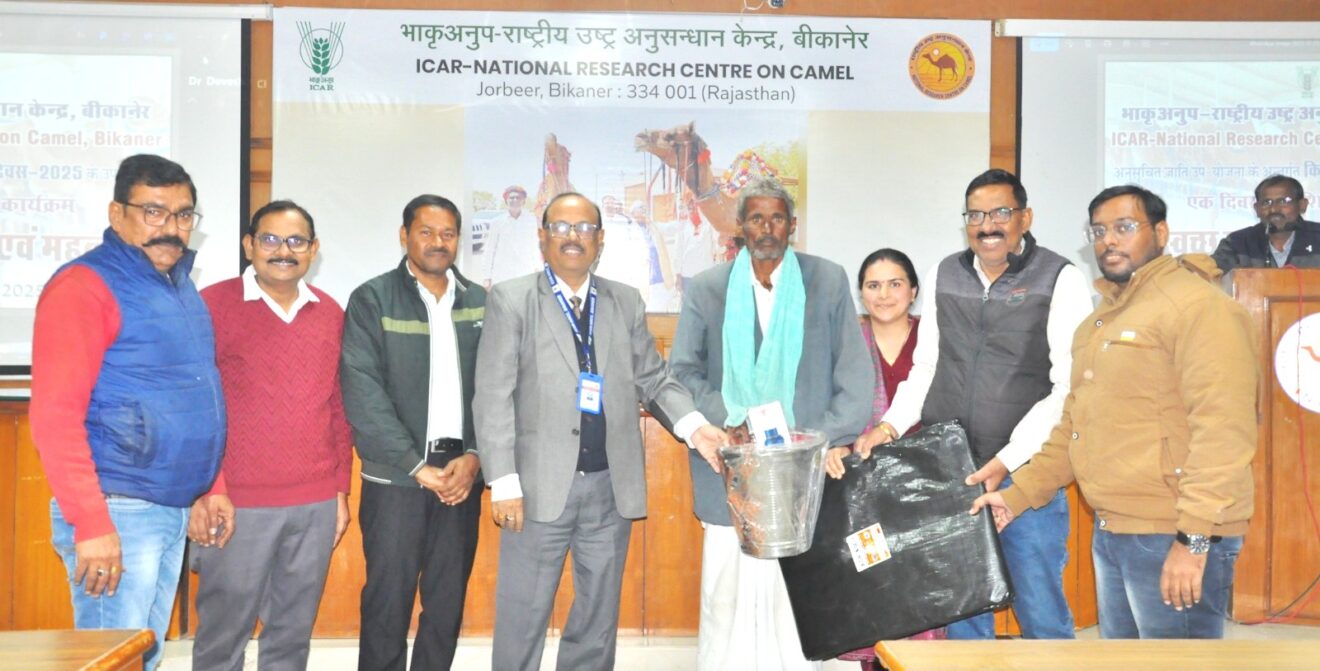 बीकानेर, 23 दिसम्बर, 2025 । भाकृअनुप-राष्ट्रीय उष्ट्र अनुसंधान केन्द्र, बीकानेर द्वारा मनाए जा रहे ‘स्वच्छता पखवाड़ा’(16-31 दिसम्बर) गतिविधियों के क्रम में आज राष्ट्रीय किसान दिवस का आयोजन किया गया। किसान दिवस के इस अवसर पर केन्द्र द्वारा अनुसूचित जाति उप-योजना (SCSP) के अंतर्गत “स्वच्छ दूध उत्पादन एवं महत्व” पर एक दिवसीय प्रशिक्षण कार्यक्रम भी आयोजित किया गया जिसमें बीकानेर जिले के विभिन्न गांवों यथा- परवा, गीगासर, गाढ़वाला, उदासर, अम्बासर, बादनूं आदि से 65 पशुपालकों (महिला एवं पुरुष) ने सहभागिता निभाई । इस अवसर पर किसानों को कृषि संबद्ध संसाधनों का वितरण भी किया गया। कार्यक्रम में केंद्र के विशेषज्ञ वैज्ञानिकों ने प्रतिभागी पशुपालकों को पशुधन एवं कृषि आधारित उपयोगी जानकारी प्रदान की। प्रतिभागी किसानों को भारतीय कृषि अनुसंधान परिषद, नई दिल्ली के माध्यम से रखी गई ऑनलाईन बैठक से भी जोड़ा गया जिसमें माननीय केंद्रीय कृषि एवं किसान कल्याण और ग्रामीण विकास मंत्री श्री शिवराज सिंह चौहान ने सर्वप्रथम देश के किसानों को चौधरी चरण सिंह जयंती की बधाई संप्रेषित करते हुए उन्हें किसान कल्याण, समृद्धि और ग्रामीण विकास का प्रतीक बताया। उन्होंने कहा कि विकसित भारत-जी राम जी” से ग्रामीण रोजगार और विकास की नई तस्वीर बनेगी। इस अवसर पर श्री भागीरथ चौधरी, माननीय केंद्रीय कृषि एवं किसान कल्याण राज्य मंत्री आदि ने भी कार्यक्रम को संबोधित किया।