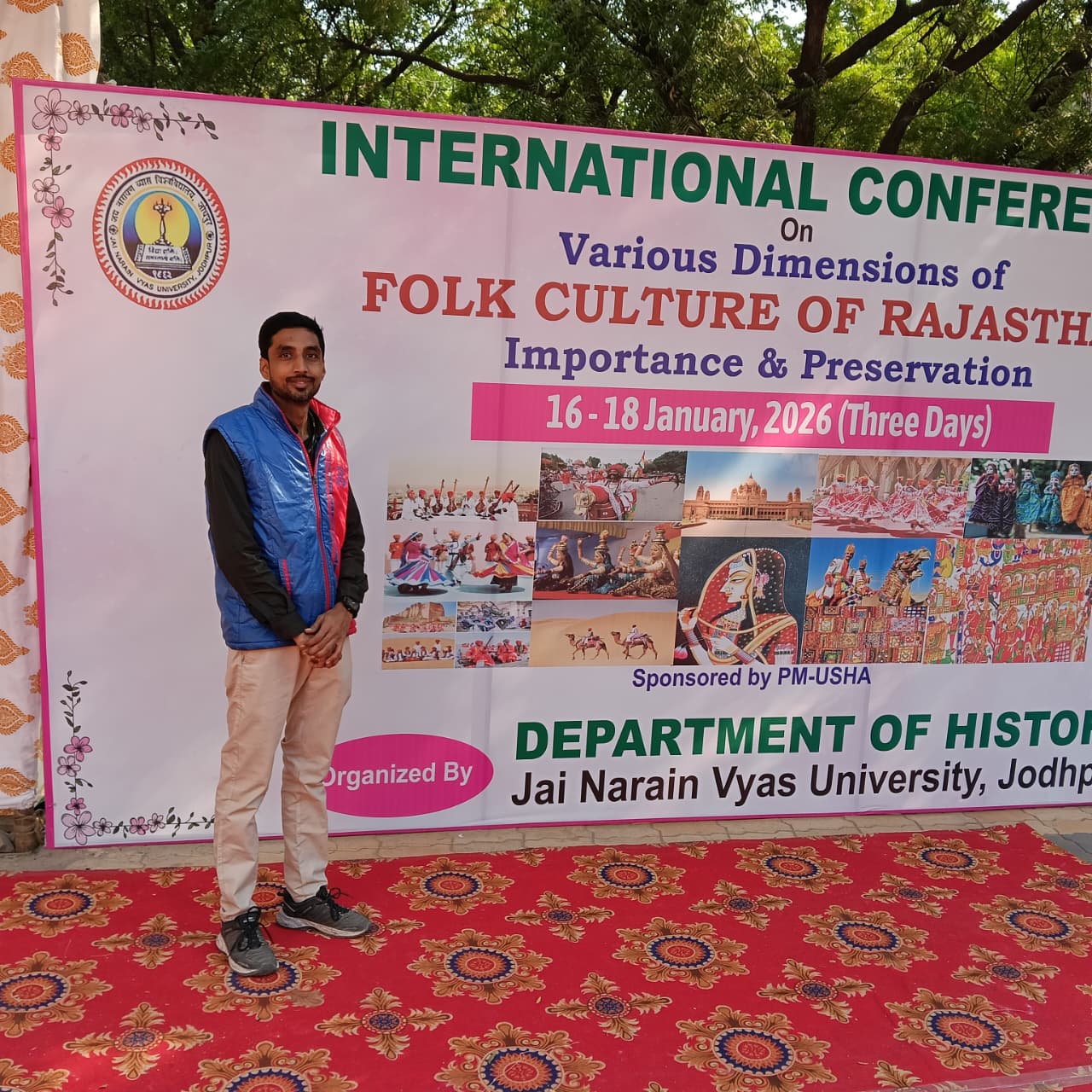 बीकानेर/ जोधपुर।जोधपुर स्थित जय नारायण व्यास विश्वविद्यालय के इतिहास विभाग द्वारा आयोजित अंतरराष्ट्रीय संगोष्ठी में अभय जैन ग्रन्थालय, बीकानेर से जुड़े लव कुमार देराश्री ने सहभागिता करते हुए बीकानेर की सांस्कृतिक परंपराओं पर आधारित अपना शोध पत्र प्रस्तुत किया।