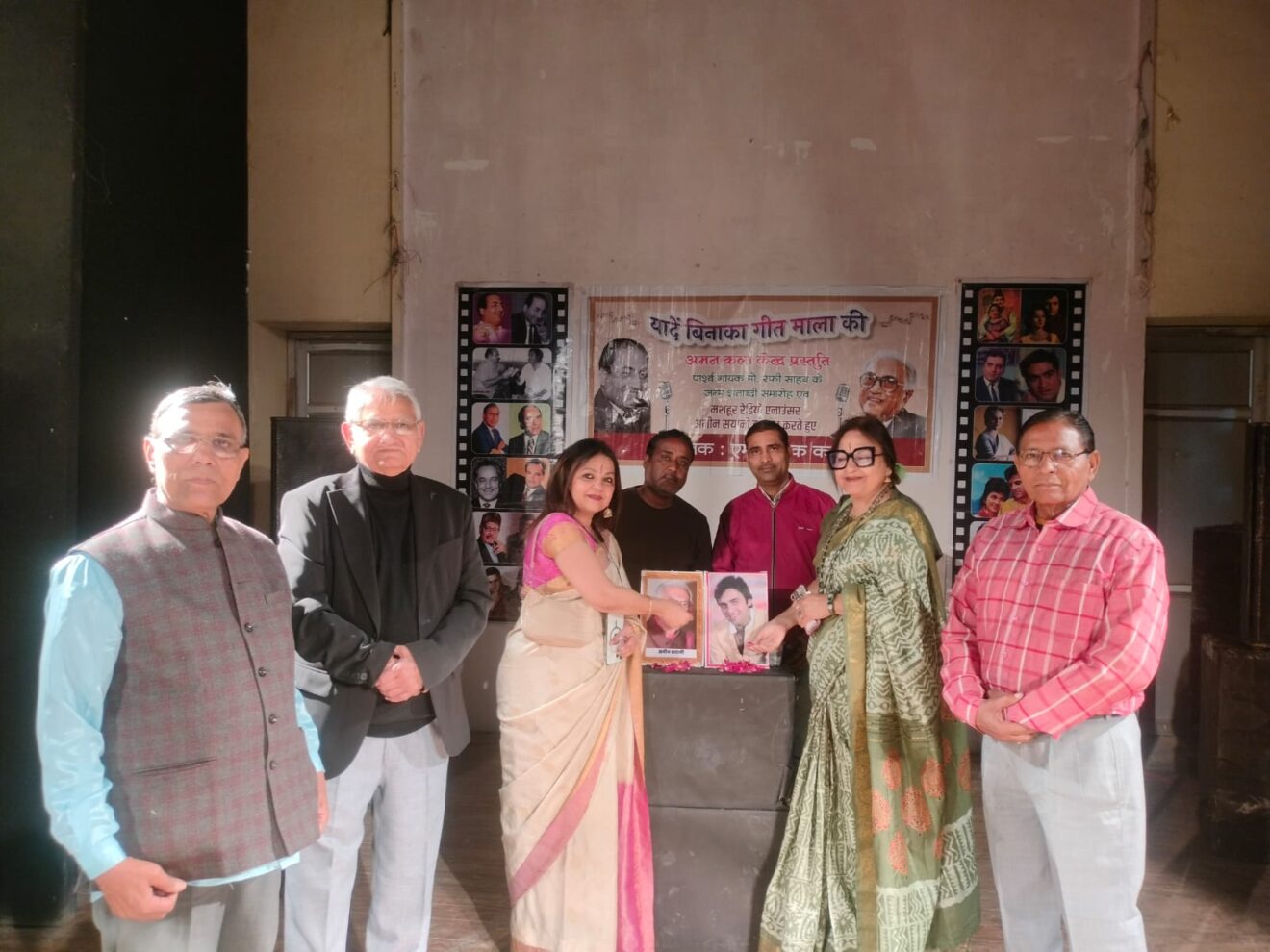 बीकानेर।यादें बिनाका गीत माला की में गूंजे तराने अमन कला केंद्र द्वारा शुक्रवार को टाउन हॉल में विश्व रेडियो दिवस व फिल्म अभिनेता विनोद मेहरा की जयंती जन्म दिवस व मशहूर एनाउंसर अमीन सयानी को याद करते हुए फिल्मी गीतों का रंगारंग प्रोग्राम यादें बिनाका गीत माला की आयोजित किया गया संस्था अध्यक्ष एम रफीक कादरी ने बताया कि कार्यक्रम के मुख्य अतिथि सखा संगम के अध्यक्ष एन डी रंगा थे अध्यक्षता संयुक्त रूप से श्रीमती अलका डोली पाठक शिक्षाविद व श्रीमती डॉ मीना आसोपा वरिष्ठ भाजपा नेत्री ने की विशिष्ट अतिथि के रूप में डॉ सीताराम गोठवाल डॉ जैनुल आबेदीन डॉ प्रवीण चतुर्वेदी डॉ मो आरिफ डॉ पी के सरीन डॉ दिनेश शर्मा डॉ राकेश रावत डॉ हिमांशु दाधीच डॉ योगेश साध महबूब अली रंगरेज समुद्र सिंह राठौड़ एम आर कुकरेजा थे कार्यक्रम में एम रफीक कादरी अहमद हारून कादरी परितोष झा सिराजुद्दीन खोखर जावेद मिर्जा सुमन पवार राजेन्द्र बोथरा विनोद सक्सेना डॉ नरेश पोपली कैलाश खरखोदिया एम आर कुकरेजा डॉ दिनेश शर्मा डॉ योगेश साध डॉ प्रवीण चतुर्वेदी डॉ हिमांशु दाधीच डॉ राकेश रावत डॉ पी के सरीन ने गीत प्रस्तुत कर विनोद मेहरा और अमीन सयानी को श्रद्धांजलि अर्पित की संचालन एम रफीक कादरी ने किया