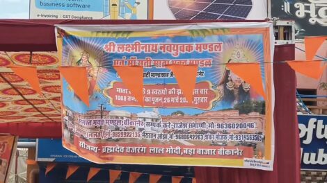 बीकानेर, 25 मार्च। शहर में धार्मिक आस्था और सामाजिक समरसता का एक भव्य आयोजन गुरुवार, 26 मार्च 2026 को आयोजित किया जाएगा। श्री लक्ष्मीनाथ नवयुवक मंडल...