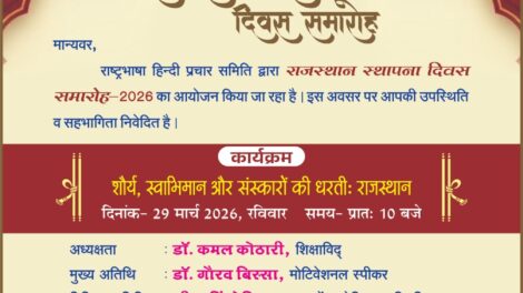 बीकानेर। राष्ट्रभाषा हिंदी प्रचार समिति, श्रीडूंगरगढ़ (बीकानेर) द्वारा राजस्थान स्थापना दिवस के उपलक्ष्य में 29 मार्च 2026, रविवार को एक भव्य समारोह...