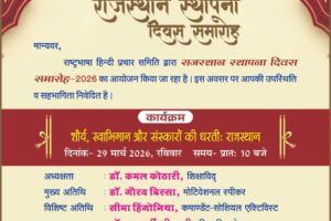 बीकानेर। राष्ट्रभाषा हिंदी प्रचार समिति, श्रीडूंगरगढ़ (बीकानेर) द्वारा राजस्थान स्थापना दिवस के उपलक्ष्य में 29 मार्च 2026, रविवार को एक भव्य समारोह का आयोजन...