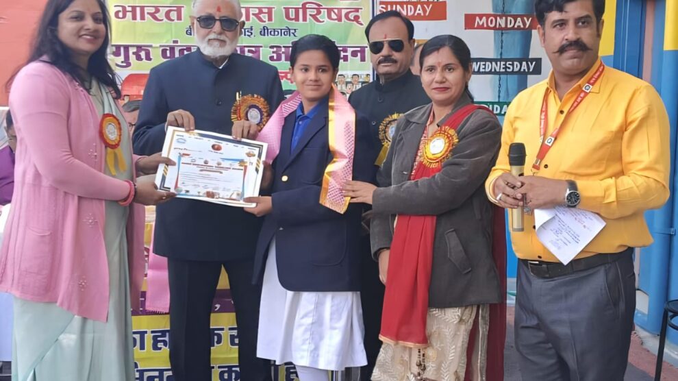 बीकानेर। भारत विकास परिषद, बीकाणा इकाई द्वारा आज ए. ऍम. द्रोण पब्लिक स्कूल, मुक्ता प्रसाद कॉलोनी में परिषद का राष्ट्रीय प्रकल्प गुरु वंदन छात्र अभिनंदन कार्यक्रम का आयोजन किया गया। कार्यक्रम के अवसर...