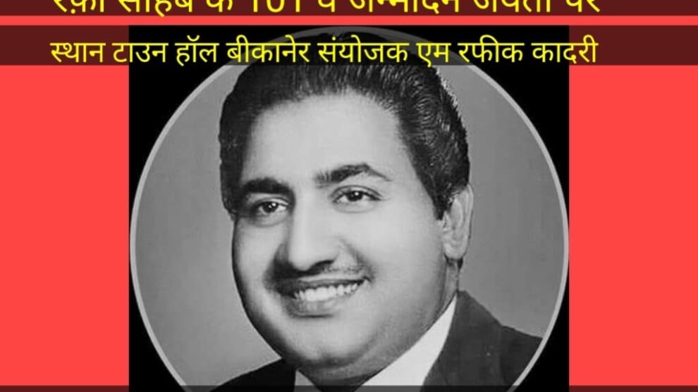मोहम्मद रफी तू बहुत याद आया 23 दिसंबर को अमन कला केंद्र द्वारा 23 दिसंबर टाउन हॉल में हिंदुस्तानी सिनेमा के महान पार्श्व गायक मोहम्मद रफी के 101 वे जन्म दिवस के अवसर पर मोहम्मद रफी तू बहुत याद आएगा आयोजित किया जाएगा संस्था के अध्यक्ष एम रफीक कादरी ने बताया कार्यक्रम के मुख्य अतिथि एन डी...