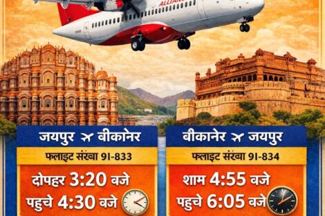 बीकानेर और जयपुर के बीच हवाई यात्रा करने वाले यात्रियों के लिए जयपुर–बीकानेर रूट पर संचालित होने वाली फ्लाइट सेवा का नया समर शेड्यूल जारी कर दिया गया...