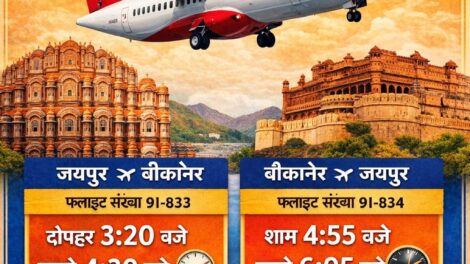 बीकानेर और जयपुर के बीच हवाई यात्रा करने वाले यात्रियों के लिए जयपुर–बीकानेर रूट पर संचालित होने वाली फ्लाइट सेवा का नया समर शेड्यूल जारी कर दिया गया...