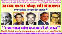 GENERAL NEWS एक शाम पांच फनकारों के नाम 18 नवम्बर को अमन कला केंद्र द्वारा टाउन हॉल में शाम 6 30 बजे से November 13, 2025