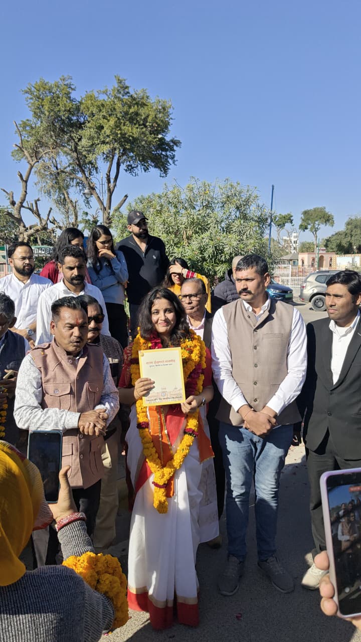 इस उपलब्धि पर विप्र समाज द्वारा भगवान परशुराम सर्कल पर लावण्या शर्मा का अभिनंदन किया गया.